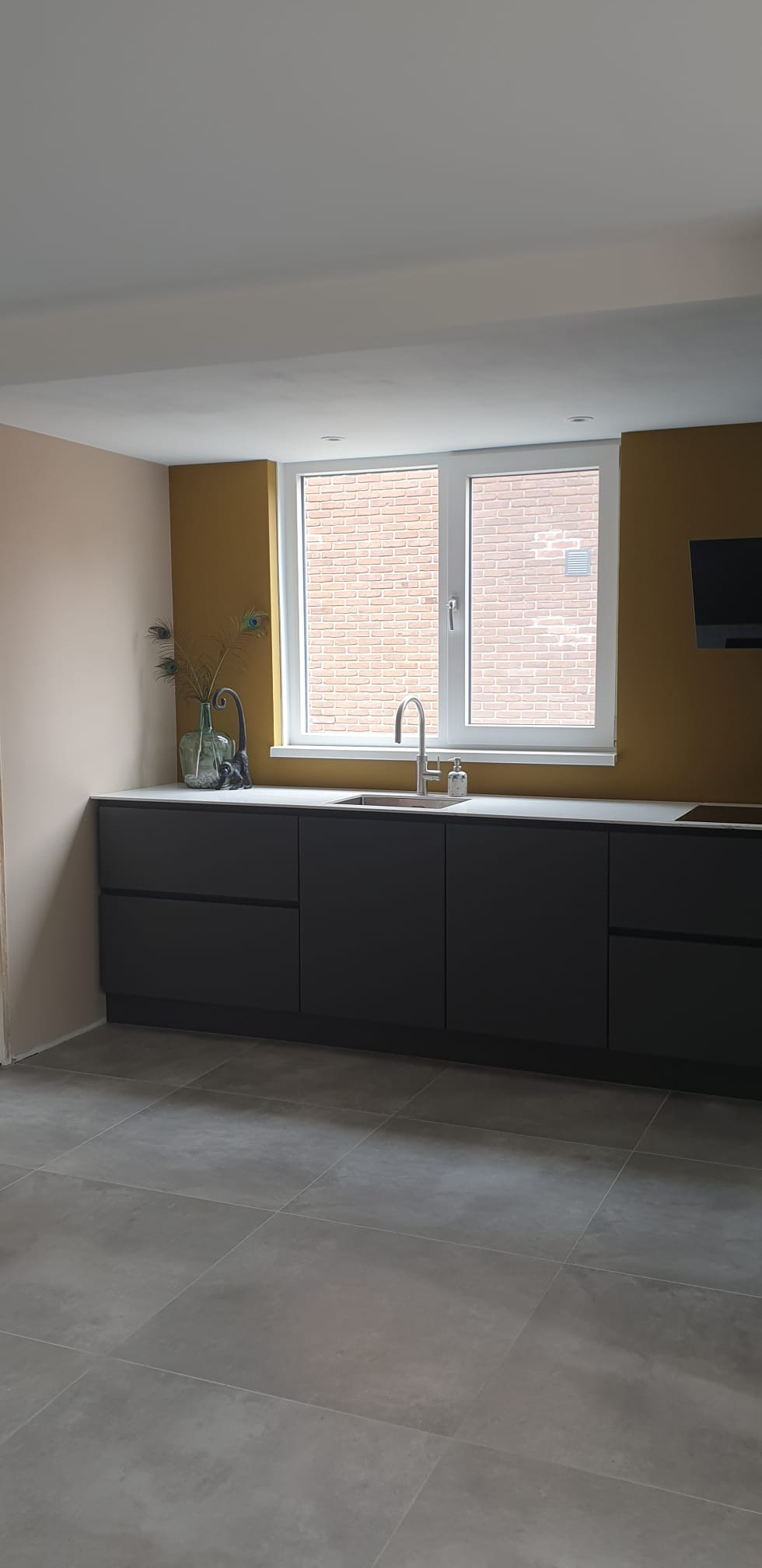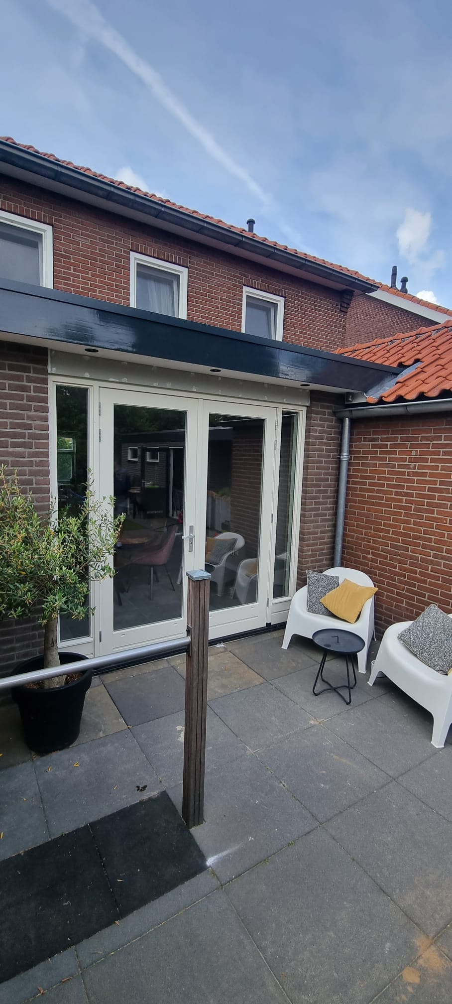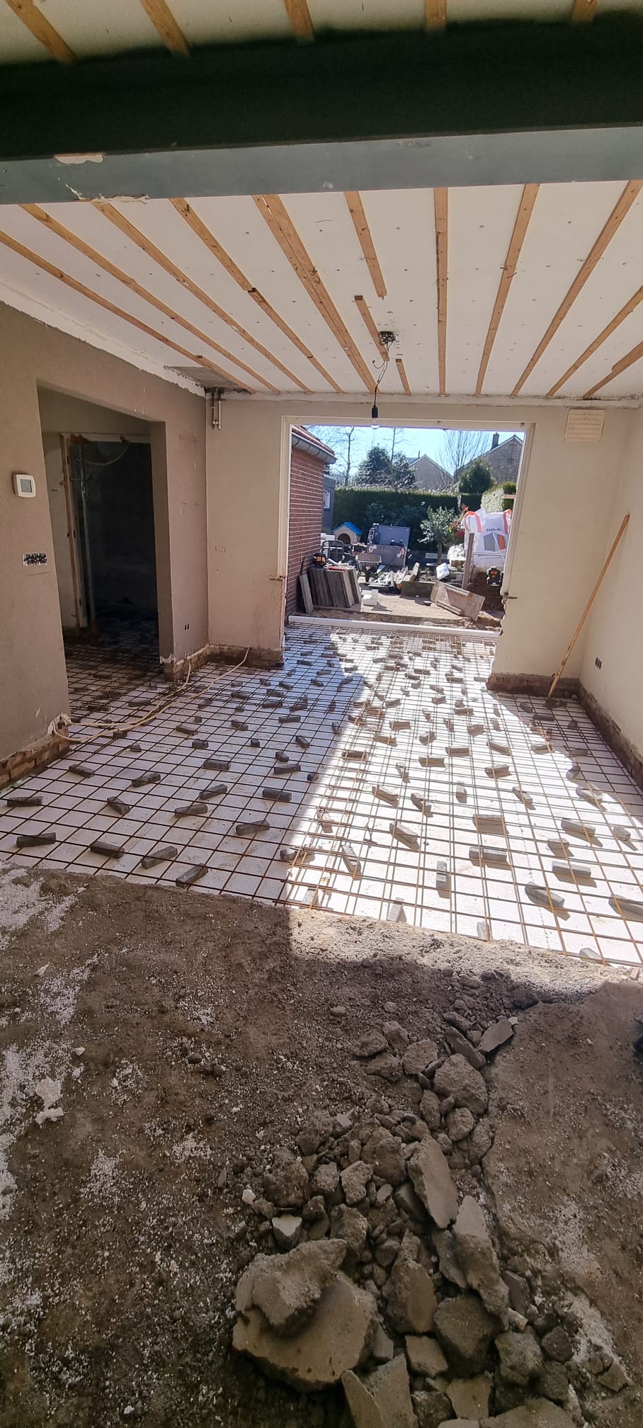 Bij deze verbouwing aan een woning in Haaksbergen is 2,5 meter uitgebouwd, er is een dubbele deur geplaatst en de woning is volledig gestukadoord. Over de gehele begaande grond is een nieuwe beton vloer gestort en voorzien van vloerverwarming.